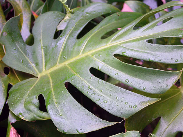 Korkea kosteus on erittäin tärkeää monsteralle, joten ole valmis suihkuttamaan ja pesemään kasvin lehtiä usein lämpimällä vuodenaikalla, mutta jos yhtäkkiä huomaat kosteuspisteitä monstera-ruukun alla, tämä on merkki sinulle siitä, että olet liikaa jättää kosteutta.Tätä kykyä poistaa ylimääräinen kosteus lehtien läpi kutsutaan suolistoksi. Monstera "guttudes" yleensä ennen sateen tai kun huone on liian kostea, joten monstera kutsutaan yleisesti crybaby. Korvaa lehtien ruiskuttaminen talvella hygieenisellä pölynimulla ja lehtien levyn kiillottamisella.