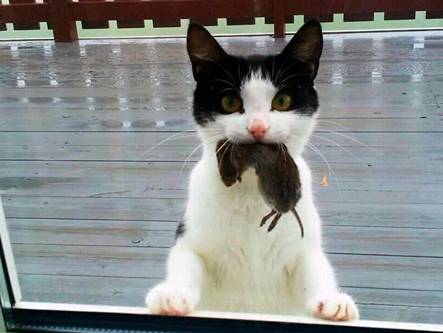 Kuvassa: Kissa tarttui hiiren kiinniJyrsijöiden torjunta pelotteilla