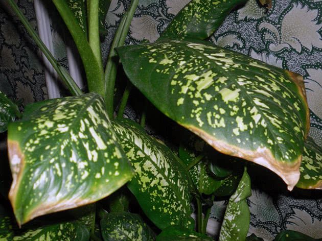 Devido à falta de nutrientes no solo, as folhas superiores das plantas geralmente ficam amarelas. Para salvar as flores de interior da fome, aumente a dosagem de fertilizantes ou simplesmente fertilize as plantas com mais frequência. Mas não exagere: de excesso de fertilizante flores de interior também podem ter problemas.