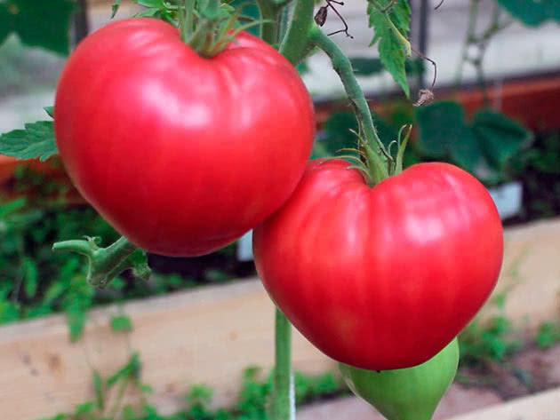 Na foto: variedade de tomate Framboesa giganteAlém das variedades descritas, os tomates se distinguem pelo alto rendimento: