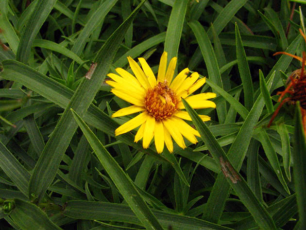 pode ser encontrada em florestas, em encostas de giz e nas estepes do Cáucaso e da Europa. Esta é uma planta compacta com uma altura de 15 a 30 cm com caules fortes mas finos ramificando-se na parte superior, folhas estreitas lanceoladas sésseis de até 6 cm de comprimento e cestos únicos amarelos com um diâmetro de 2 a 4 cm. No cultivo, o espécie está em cultivo desde 1793, tem uma variedade de baixo crescimento até 20 cm de altura, que se distingue pela floração abundante e longa.